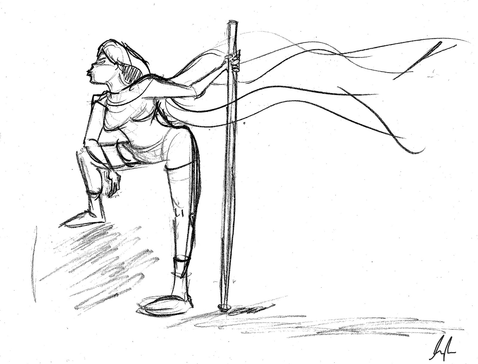 Unfortunately today was the last day of my Dynamic Characterization class with Mark McDonnell. I absolutely loved this class and will most certainly take it again. The assignment was to add some sort of magical element to the model's dress. Here are several of the drawings I did tonight. They were all three minute poses.